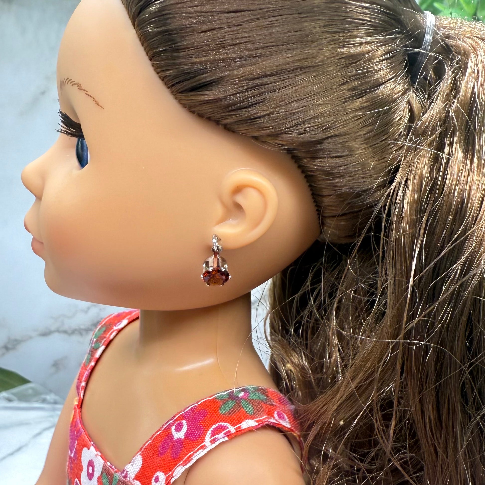 Red Round Rhinestone Silver Dangle Doll Earrings • 14 Inch Fashion Doll Jewelry