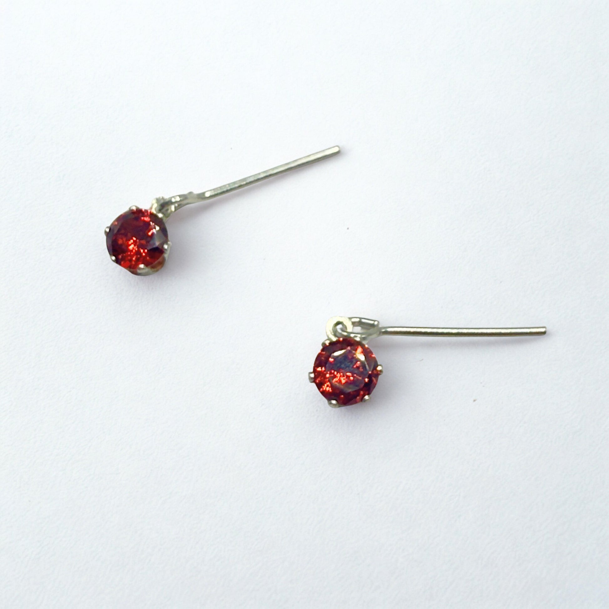 Red Round Rhinestone Silver Dangle Doll Earrings