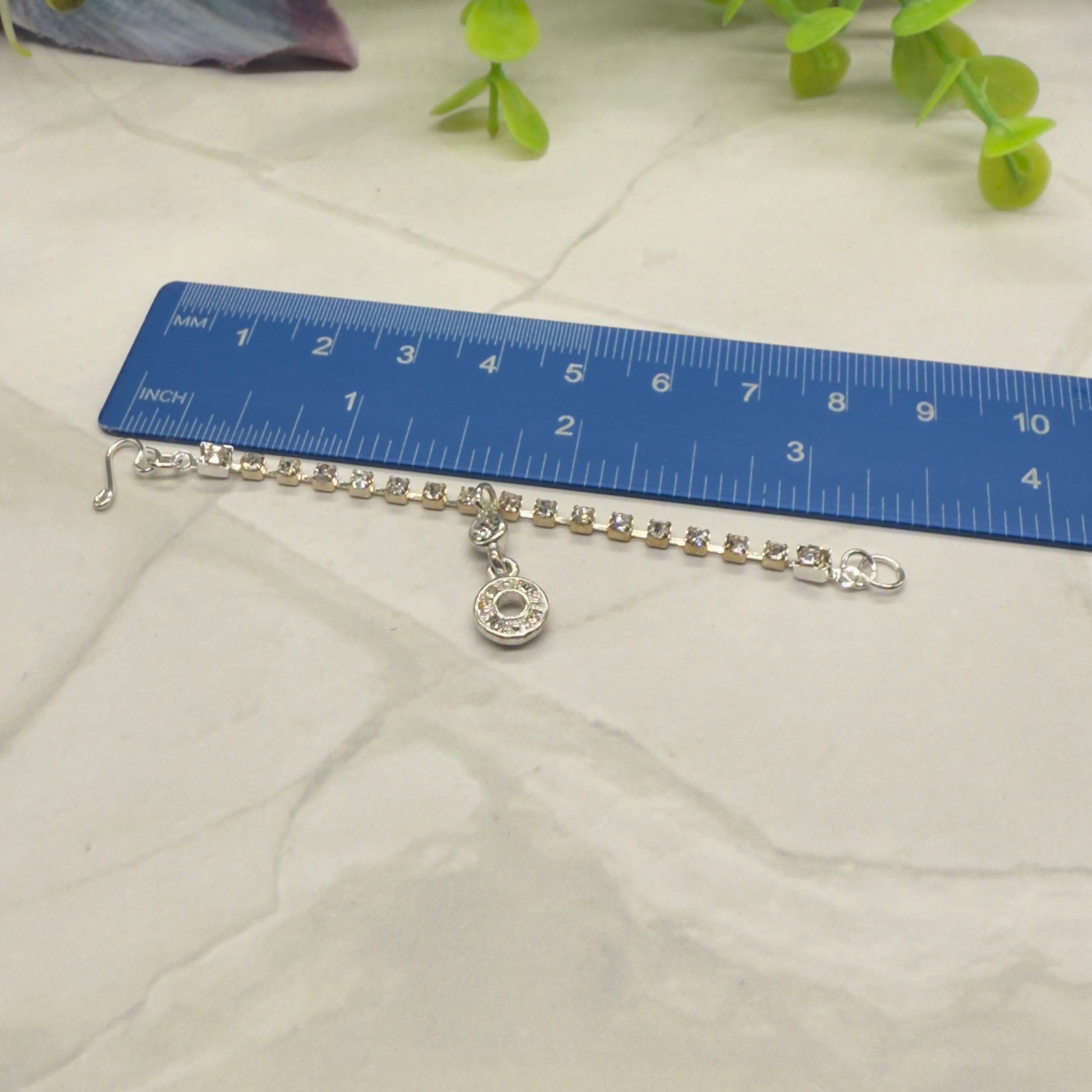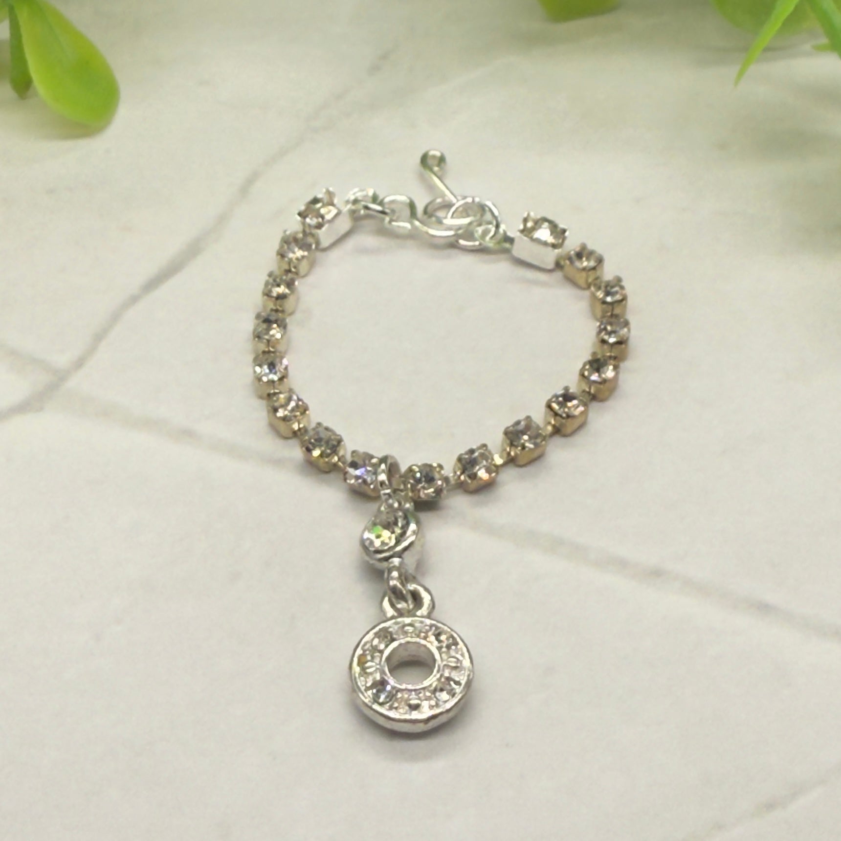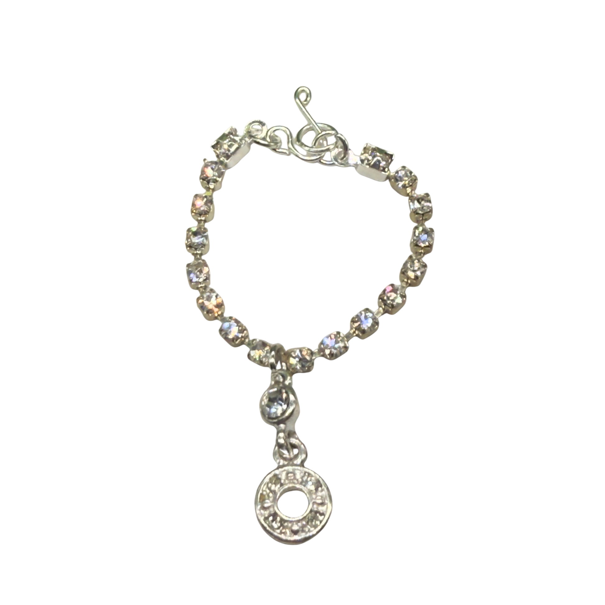 Round Drop Pendant Clear Rhinestone Chain Doll Necklace. Necklace chain measures 3.25 inches long.