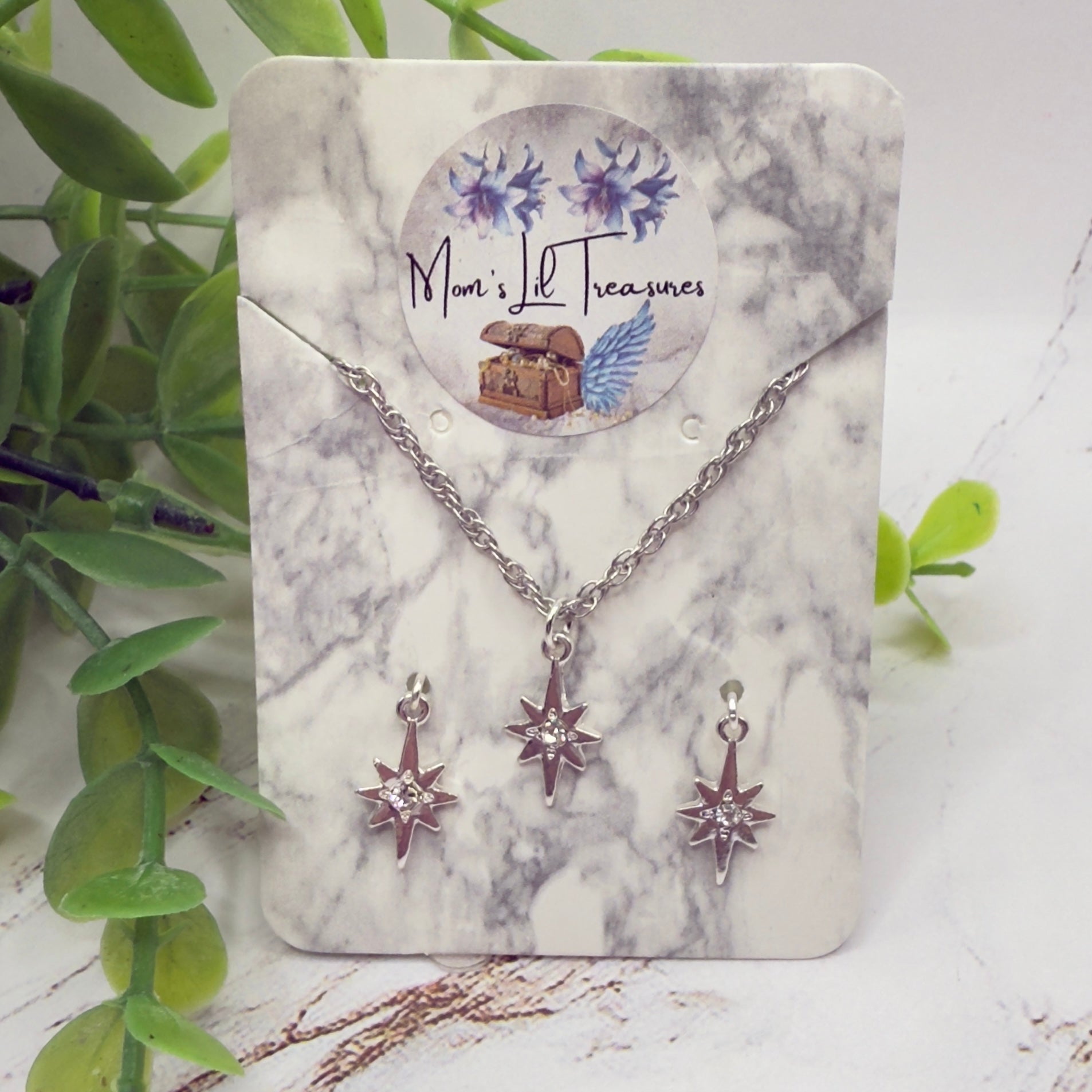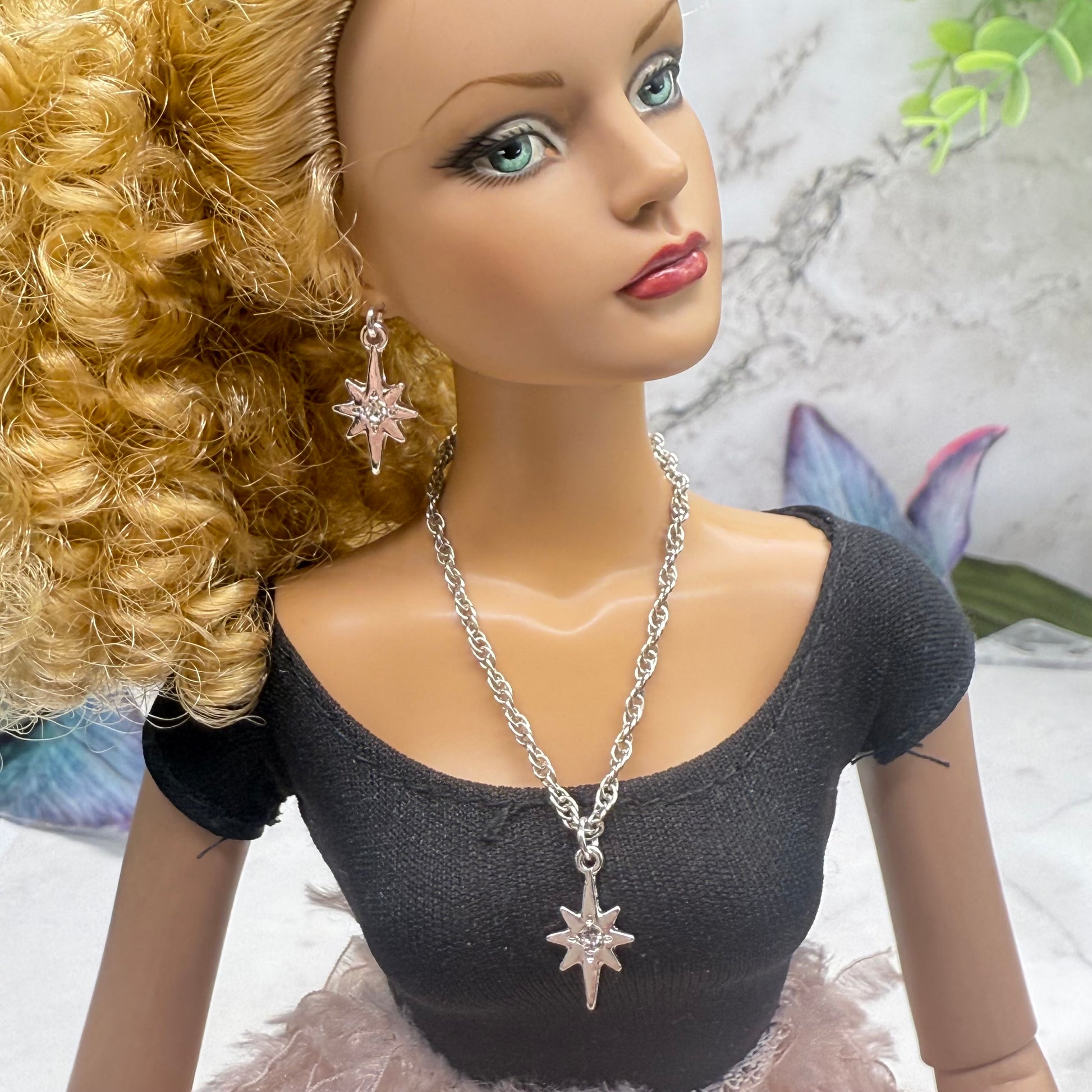 Silver Starburst Pendant Doll Necklace & Earrings • 16 Inch Fashion Doll Jewelry