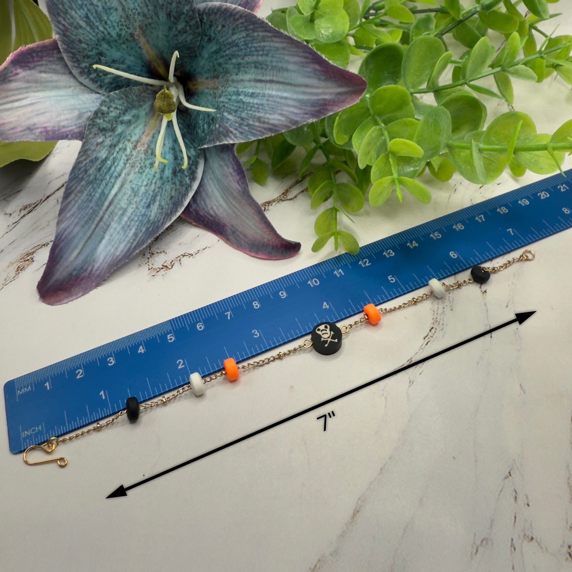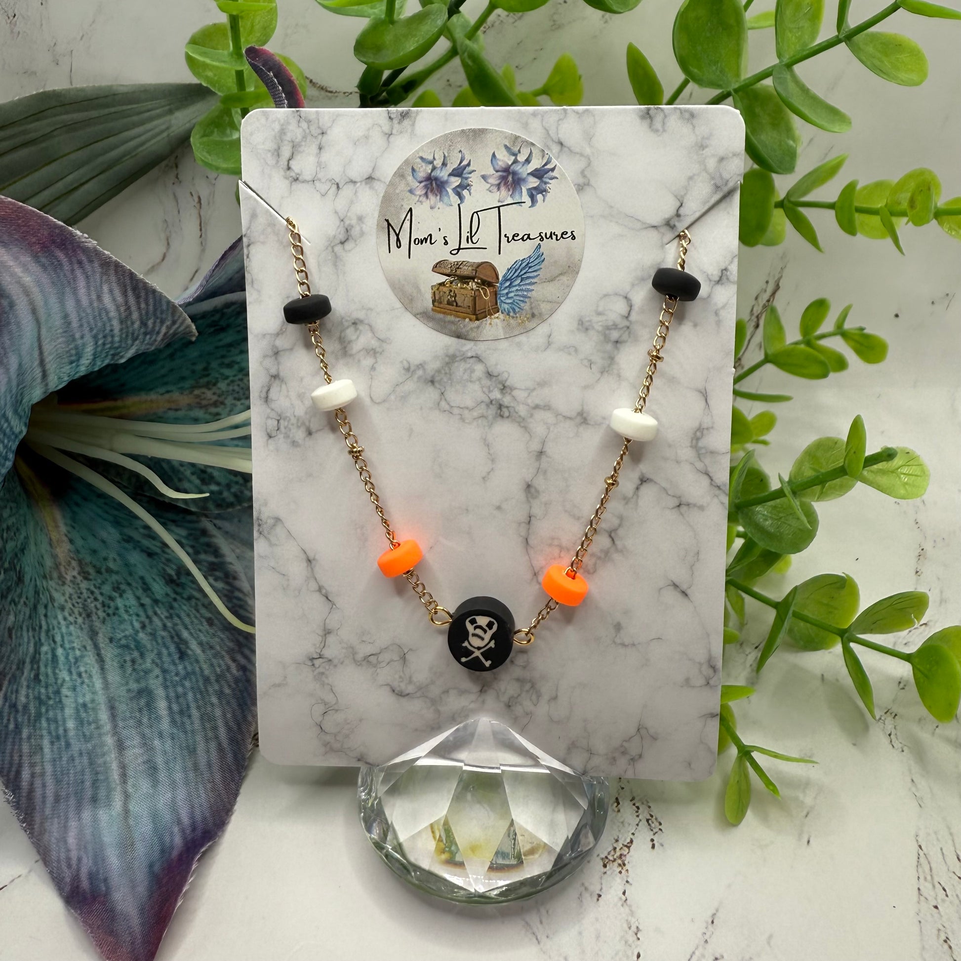 Skull Bones Halloween Silicone Beaded Gold Chain Doll Necklace • 18 Inch Fashion Doll Jewelry