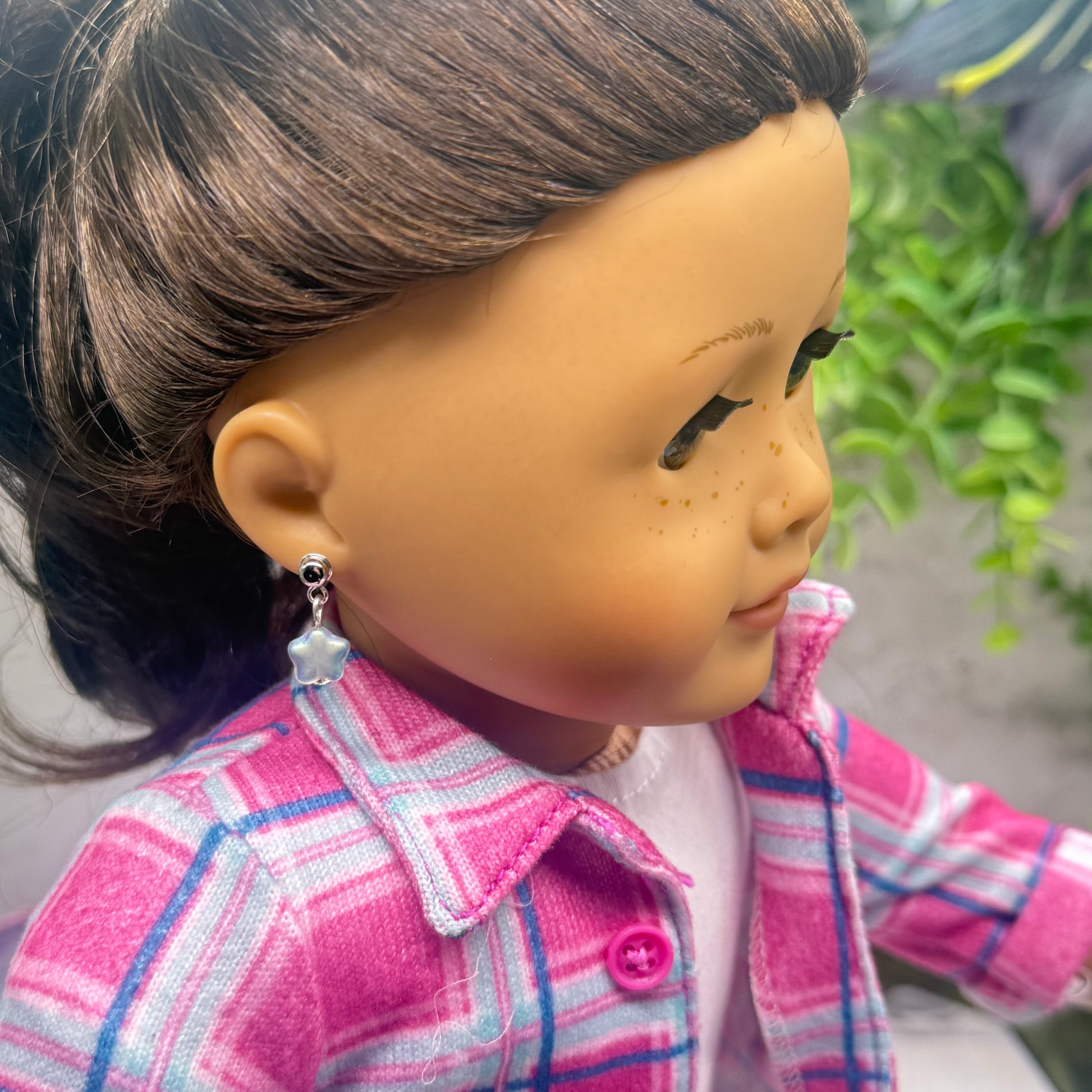 Light Blue Pearly Star Doll Earring DANGLE ONLY • 18” Fashion Doll Jewelry
