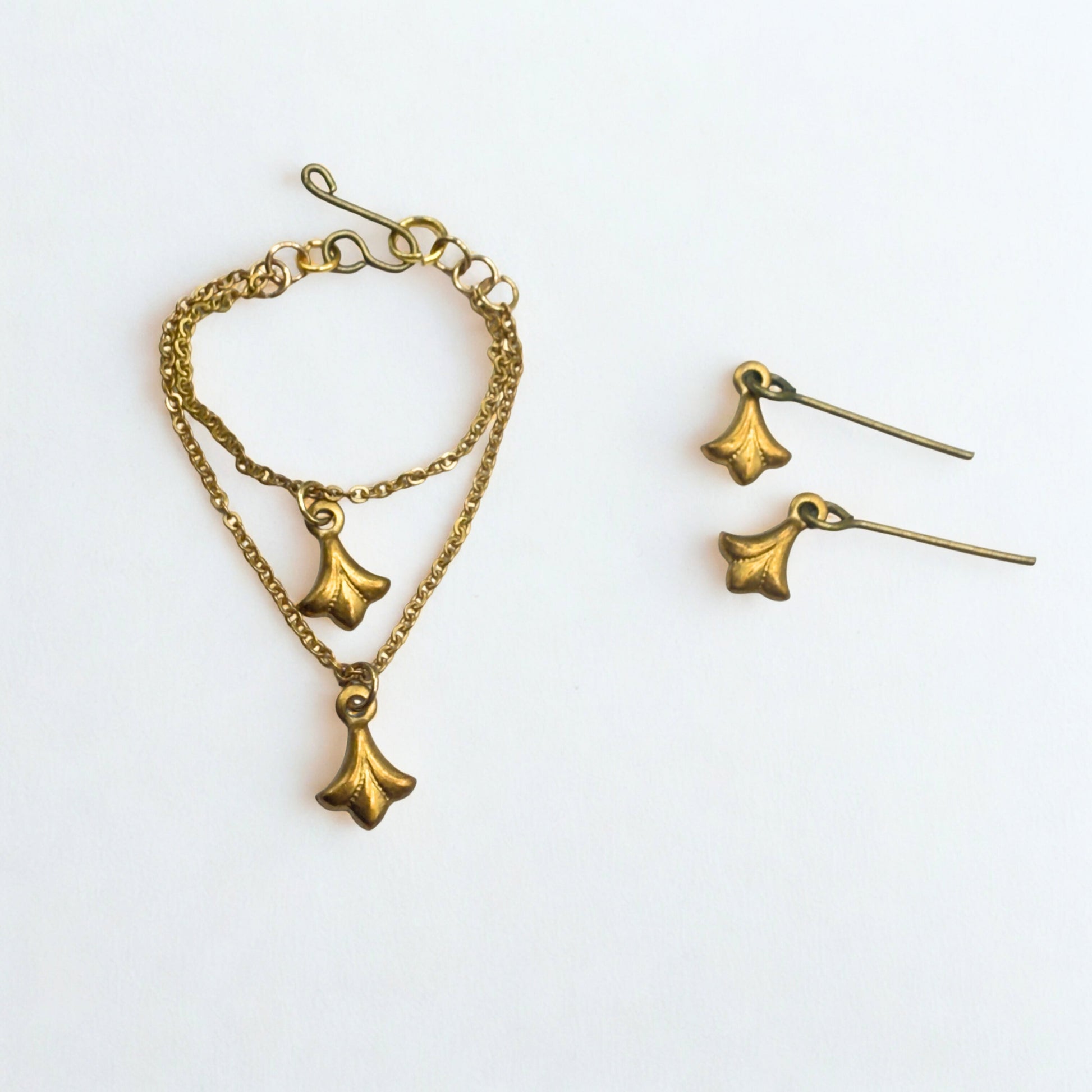 Victorian Style Double Pendant Layer Chain Doll Necklace & Earrings Set