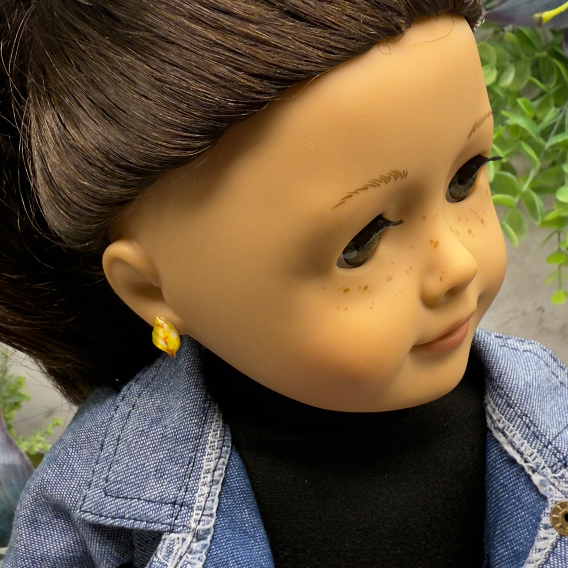 Yellow Golden Autumn Fall Leaf Post Doll Earrings •2mm Post • 18 Inch Fashion Doll