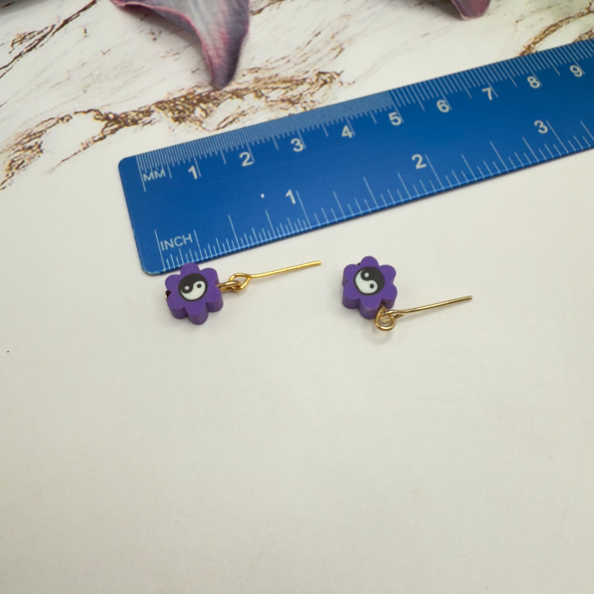 Yin-Yang Sign on Purple Flower Charm Doll Necklace & Earrings Set